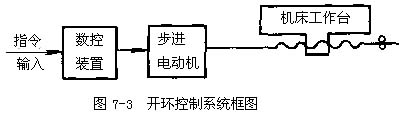 1)開環(huán)控制數(shù)控機床,在開環(huán)控制中,機床沒有檢測反饋裝置(見圖7-3),數(shù)控裝置發(fā)出信號的流程是單向的,它對機床移動部件的實際位置不作檢驗,加工精度主要取決于伺服系統(tǒng)的性能。這種機床工作比較穩(wěn)定,反映迅速。調試方便,維修簡單,但其控制精度受到限制。