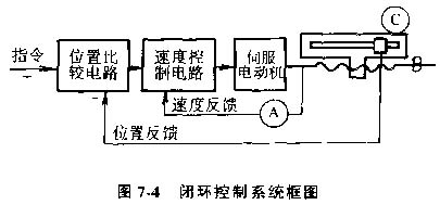 閉環(huán)控制系統(tǒng)框圖見圖7-4。圖中A為速度測量元件,C為位置測量元件。這類機床的優(yōu)點是精度高、速度快,但是調試和維修比較復雜。