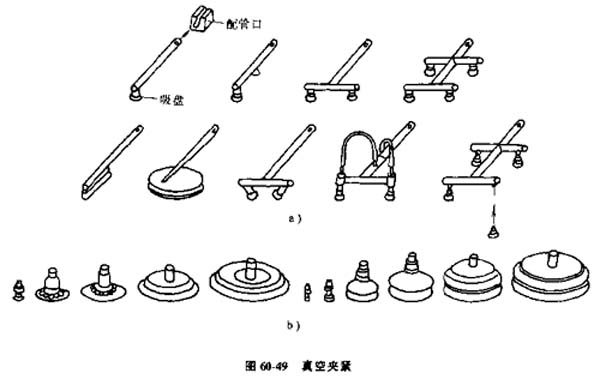 (3)真空夾緊,對零件施加負(fù)壓,使零件貼進(jìn)在夾爪上。常用形式為用按一定方式排列的一組吸向零件提供真空。