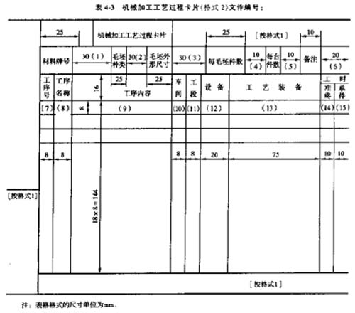 批大量生產(chǎn),除了有較細的工藝過程卡外,還要編制機械加工(或裝配)工序卡。目前,生產(chǎn)中用來說明工藝規(guī)程的幾鐘工藝文件,其需包含的內(nèi)容和具體格式已經(jīng)標準化(見JB/Z187·3—82)。表4-3~表4-6摘錄了機械加工工藝過程卡片和機械加工工序卡片的填寫格式和填寫內(nèi)容。