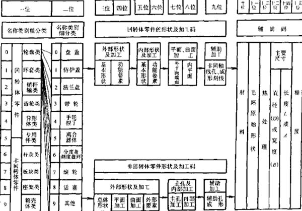(1)機(jī)械零件分類編碼JLBM-1系統(tǒng)JLBM-1分類編碼系統(tǒng)是我國(guó)原機(jī)械工業(yè)部指定的一套通用零件分類編碼系統(tǒng)(JB/Z251—85),它適用于中等及中等以上規(guī)模的多品種、中小批量生產(chǎn)的機(jī)械加工工廠,是這個(gè)些工廠在設(shè)計(jì)、制造工藝和生產(chǎn)管理等方面實(shí)施成組技術(shù)的一種指導(dǎo)性文件。