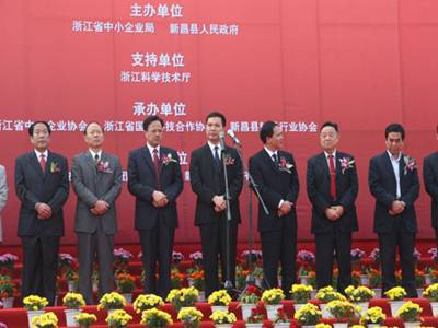 浙江省經(jīng)貿(mào)委副主任、省中小企業(yè)局局長吳家曦,浙江省中小企業(yè)局黨組成員、紀(jì)檢組長劉應(yīng)邦,浙江省中小企業(yè)協(xié)會常務(wù)副會長何榮飛,浙江省國際科技合作協(xié)會副會長阮永振,哈爾濱市工業(yè)局局長孫虹斌,縣領(lǐng)導(dǎo)何加順、溫暖、梁富銓、王學(xué)洪、濮志江、羅國安及新昌軸承協(xié)會和參展企業(yè)負(fù)責(zé)人等出席開幕式。