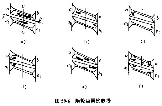 蝸輪齒面常見的接觸斑點分布見圖59-6.