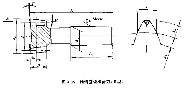 錐柄直齒插齒刀主要用于加工內(nèi)齒輪,其標(biāo)稱分度圓直徑為25.38mm兩種,精度等級分為A、B兩種。