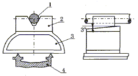 1.工件 2.上托架 3.下托架 4.床身