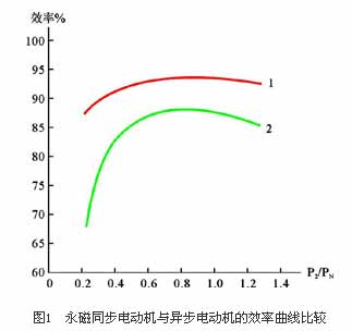 該電機不需要無功勵磁電流,可顯著提高功率因數(shù)(可高達(dá)1),并減少了定子電流和定子電阻損耗。在電機穩(wěn)定工作時,轉(zhuǎn)子和定子磁場同步運行,轉(zhuǎn)子無感應(yīng)電流,也就不存在轉(zhuǎn)子電阻損耗,兩者使電動機效率提高2%~8%,而且該電機負(fù)載率(P2/PN)在25%~120%范圍內(nèi)均可保持較高的效率和功率因數(shù),使輕載運行時節(jié)能效果更顯著。