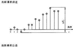 當(dāng)齒輪軸線與齒條基準(zhǔn)面在公稱位置上,被測(cè)齒條與理精確的測(cè)量齒輪單面嚙合時(shí),被測(cè)齒條沿其分度線在工作長(zhǎng)度內(nèi)平移一個(gè)齒距的實(shí)際值與公稱值之差的最大幅度值 |