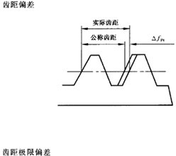 在齒條分度線上,實(shí)際齒距與公稱齒距這差 |