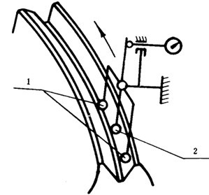 單點法測量側(cè)隙時,可直接在指示表上讀出或根據(jù)測片或塞片的厚度定值。以在19.2.2所規(guī)定的各測量位置中,測得的最大側(cè)隙和最小側(cè)隙作為測量結(jié)果。
