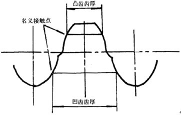 在基本齒廓上,凸齒或凹齒左右齒面上名義接觸點(diǎn)處的齒厚。