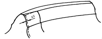 分別包含同一條齒面接觸跡線(凸齒面或凹齒面)各一個(gè)端點(diǎn)的兩個(gè)軸平面所截取的分度圓弧長(zhǎng)。