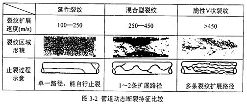 這種說法的依據(jù)是:對于前一種情況,從裂源處開始,減壓波前沿的移動速度比斷裂擴(kuò)展速度更快,使得裂紋尖端的管壁應(yīng)力因減壓波的通過而不斷減小,并最終降至止裂應(yīng)力水平以下而使裂紋止裂;反之裂紋尖端的壓力不發(fā)生變化,斷裂將持續(xù)擴(kuò)展,因為裂紋尖端的動態(tài)襲紋驅(qū)動力不會減小。
