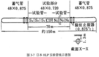 為了清楚地闡述在國外高韌性輸氣鋼管的全尺寸爆破實驗中觀測到的由材料韌性引起的裂紋持續(xù)減速現(xiàn)象,有必要先對全尺寸實驗的方法作較為細(xì)致的描述。本節(jié)的數(shù)據(jù)還會用作第四章小試樣實驗和本章的韌性減速計算的比較。
