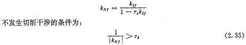 另外,當(dāng)選用半徑為Td的刀具加工內(nèi)齒圈齒廓時(shí),在齒根處可能發(fā)生切削干涉(過渡切削)。同樣由式(2.24)可計(jì)算出曲線H2在對(duì)應(yīng)于齒根處的相對(duì)曲率kZ 了,齒廓曲線HN在齒根處的相對(duì)曲率kNf為: