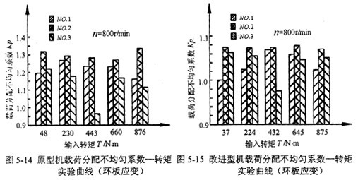 對(duì)三環(huán)減速機(jī)原型機(jī)和改進(jìn)型機(jī)進(jìn)行效率實(shí)驗(yàn),在相同的傳動(dòng)條件下,改進(jìn)型機(jī)的效率略高于原型機(jī),在額定轉(zhuǎn)速和額定轉(zhuǎn)矩下,傳動(dòng)效率可達(dá)92%。對(duì)三環(huán)減速機(jī)原型機(jī)和改進(jìn)型機(jī)的環(huán)板齒根彎曲應(yīng)力和環(huán)板薄弱部位應(yīng)力進(jìn)行測(cè)量,進(jìn)行載荷均衡實(shí)驗(yàn)。結(jié)果表明改進(jìn)型機(jī)具有很好的均載效果,實(shí)驗(yàn)還驗(yàn)證了載荷分配不均勻系數(shù)耳的理論計(jì)算方法的正確性及實(shí)際多少對(duì)齒嚙合問(wèn)題。