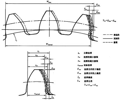 齒厚下偏差是綜合了齒厚上偏差及齒厚公差所獲得的,由于上、下偏差都使齒厚減薄,從齒厚上偏差中應減去公差值。