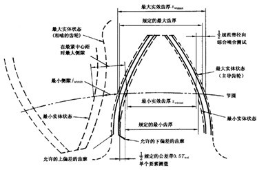 對于任何檢測方法所規(guī)定的最大齒厚必須減小,以便確保徑向跳動及其他切齒時變化對檢測結(jié)果的影響,不致增加最大實效齒厚,規(guī)定的最小齒厚也必須減小,以便使所選擇的齒厚公差能實現(xiàn)經(jīng)濟的齒輪制造,且不會被來源于精度等級的其他公差所耗盡。