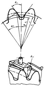 對于X=0的齒輪,理論齒厚或公稱齒厚通常等于分度圓上的齒距的一半。除非有專門的規(guī)定,一個未裝配的齒輪其實際最大齒厚常常比理論值要小,因為制造者常常以減小齒厚來實現(xiàn)側(cè)隙。