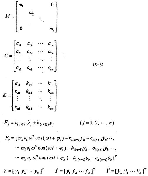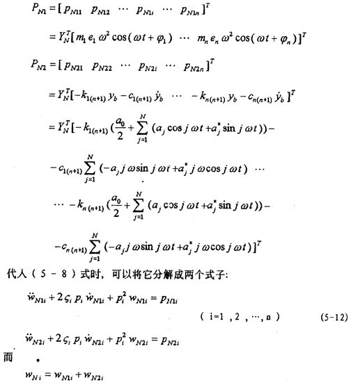 由式(5-6)、(5-8)和(5-9)可知,激勵(lì)力由二類力構(gòu)成,一類是質(zhì)量偏心力mieiω2cos(ωt+ ,另一類是恢復(fù)力ki(n+1)yb-ci(n+1) ,為求解(5-8)式方便,將(5-10)代入(5-8)式,并將正則激勵(lì)力分解成: