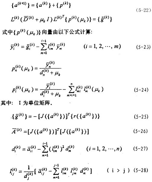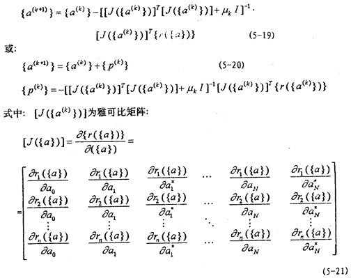 當(dāng)LM法用于(5-18)問題時(shí),迭代公式為: