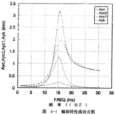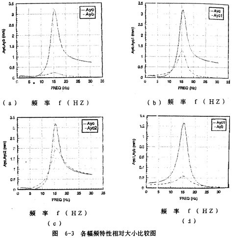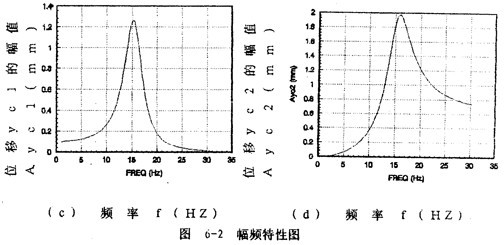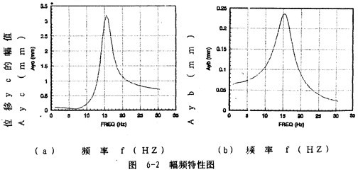 從圖6-2(b)可以知道,聯(lián)軸器從動(dòng)端質(zhì)量塊mb的位移幅值 從1赫茲開(kāi)始隨頻率增大而迅速增大直至軸系的一階固有頻率15.2赫茲,然后隨頻率增大而迅速減小,在一階固有頻率處達(dá)到最大值。