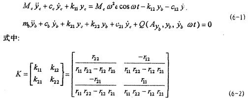 yc為圓盤在y軸方向的位移, =dyc/dt, =d2yc/dt2,分雖為圓盤在y軸方向的速度和加速度,yb=dyb/dt, = d2yb/dt2,分別為聯(lián)軸器從動(dòng)端質(zhì)量塊mb在y軸方向的位移、速度和加速度。k11,k 12,k 21,k 22分別為轉(zhuǎn)軸的阻尼系數(shù),cc,cb,c12,c21為轉(zhuǎn)軸的阻尼系數(shù),Q為聯(lián)軸器恢復(fù)力。Mc=mc+ms,ms為轉(zhuǎn)軸及軸套的質(zhì)量,mc為圓盤的質(zhì)量,ω為轉(zhuǎn)軸的角速度。