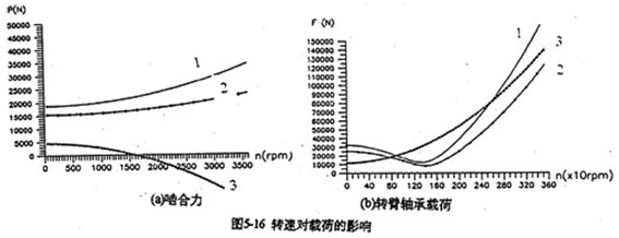 由上式知,當(dāng)齒數(shù)差Z2-Z1越小或傳動比i越大時,偏心距e越小;壓力角越大時,偏心距e越大,則選用的行星軸承尺寸大,齒板高速軸承孔徑也就大。圖5-17是傳動比、壓力角、以減速器行星軸承載荷的影響。由圖可見,傳動比的變化對減速器的動力性能影響極大;傳動比越大,則偏心距越小。由式(5-30)分析得,行星軸承載荷必須大。壓力角的變化,對行星軸承載荷影響小得多。