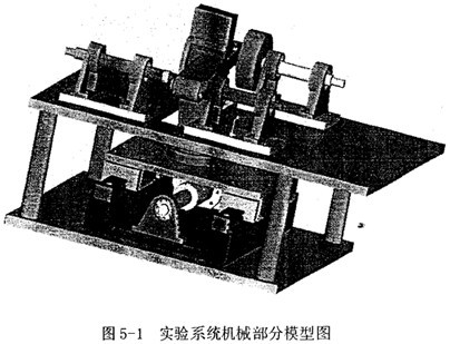 如圖5-1所示為實(shí)驗(yàn)系統(tǒng)機(jī)械部分的模型圖片,為了顯示清楚,沒(méi)有配置外邊的機(jī)箱,整個(gè)機(jī)構(gòu)是完全開(kāi)放式的,這樣也便于實(shí)驗(yàn)觀察。該機(jī)械結(jié)構(gòu)由上下兩個(gè)機(jī)架支撐,和前面的原理圖不同,下邊機(jī)架上放置昆旋導(dǎo)軌構(gòu)件(未顯示伺服電機(jī)),上邊機(jī)架則是上圖所示的其余連桿機(jī)構(gòu)及其支撐架、軸承等(未顯示常速電機(jī))。