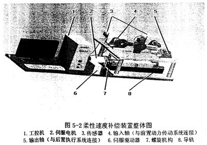 基于圖5-1所示機(jī)構(gòu),配置伺服驅(qū)動(dòng)裝置、傳感器以及計(jì)算機(jī)控制系統(tǒng),獲得該柔性速度補(bǔ)償裝置的原型,如圖5-2所示。
