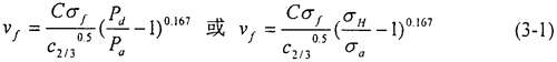 為了得到數(shù)值解答,Maxey的延性斷裂模型總結(jié)出了裂紋擴展速度和管內(nèi)壓力(或環(huán)向應力)之間的經(jīng)驗關(guān)系: