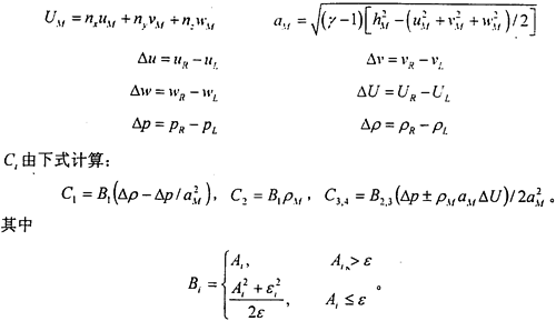 便可方便的得出一階精度格式。顯然,一階精度格式對于粘流的計算來說是沒有應用價值的。為了構造高精度格式,必須尋求確定LR的高精度方法。對于二階精度格式,LR的表達式可由下式確定: