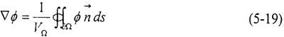 在(5-18)式,我們用到了原始變量的梯度(▽i和(▽j。在非結構網(wǎng)格中,物理量的梯度可以由高斯積分公式求得。令ф代表任一變量,則