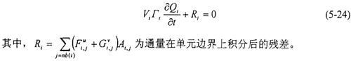 在計(jì)算出無粘通量和粘性通量后,代入(5-14)式可得到半離散的差分方程: