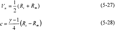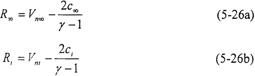 其中無反射邊界條件是根據(jù)特征線的方法來求出邊界上的參數(shù)值。根據(jù)一維完全氣體無粘非定常運(yùn)動(dòng)的方程組,在亞聲速的條件下由邊界上的入射波和出射波關(guān)系可以得到兩個(gè)Riemann不變量:
