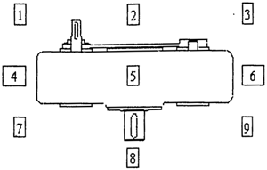在減速器的噪聲測量中(見圖4.4),分別對減速器空間九個特定點*,在A計權(quán)網(wǎng)絡(luò)下測量其聲壓級的大小,表4.7中的數(shù)據(jù)為該減速器的平均聲壓級;在減速器的振動測量中,主要對輸入和輸出軸進(jìn)行振動(位移、速度、加速度)測量以及分析,下表中的數(shù)為該減速器的最大位移量,即輸入軸的。