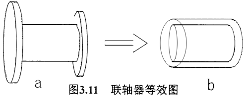 首先進行等效處理,將聯(lián)軸器兩端鐵圈的轉動慣量等效均布到中間橡膠元件的軸上。等效的原則是轉化前后系統(tǒng)總的轉動慣量不變。圖3.11中b的虛線表示等效后的均布載荷。
