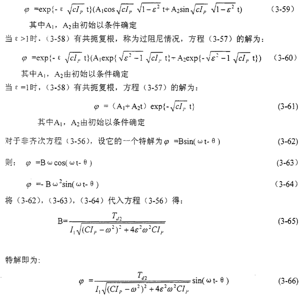 方程(3-58)的解的形式取決于 的值,當 時,(3-58)有兩個相同的實根,此時 ,稱為臨界陰阻尼系數(shù)。