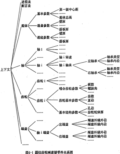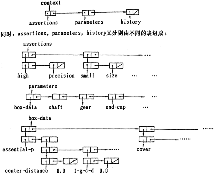 2.上下文的組成:圓柱齒輪減速器設(shè)計(jì)專家系統(tǒng)的上下文由三部分組成,它們分別是斷言表(ASSAERTIONS)、設(shè)計(jì)參數(shù)表(PARA METERAS)和進(jìn)程表(HlSTORY)。