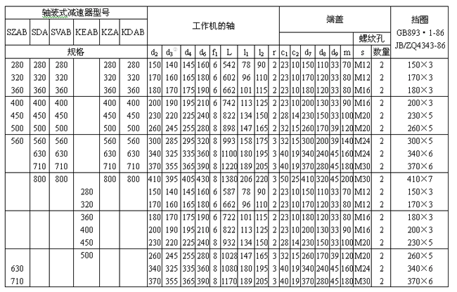 KDNB、KDAB型減速器公稱(chēng)功率和熱功率